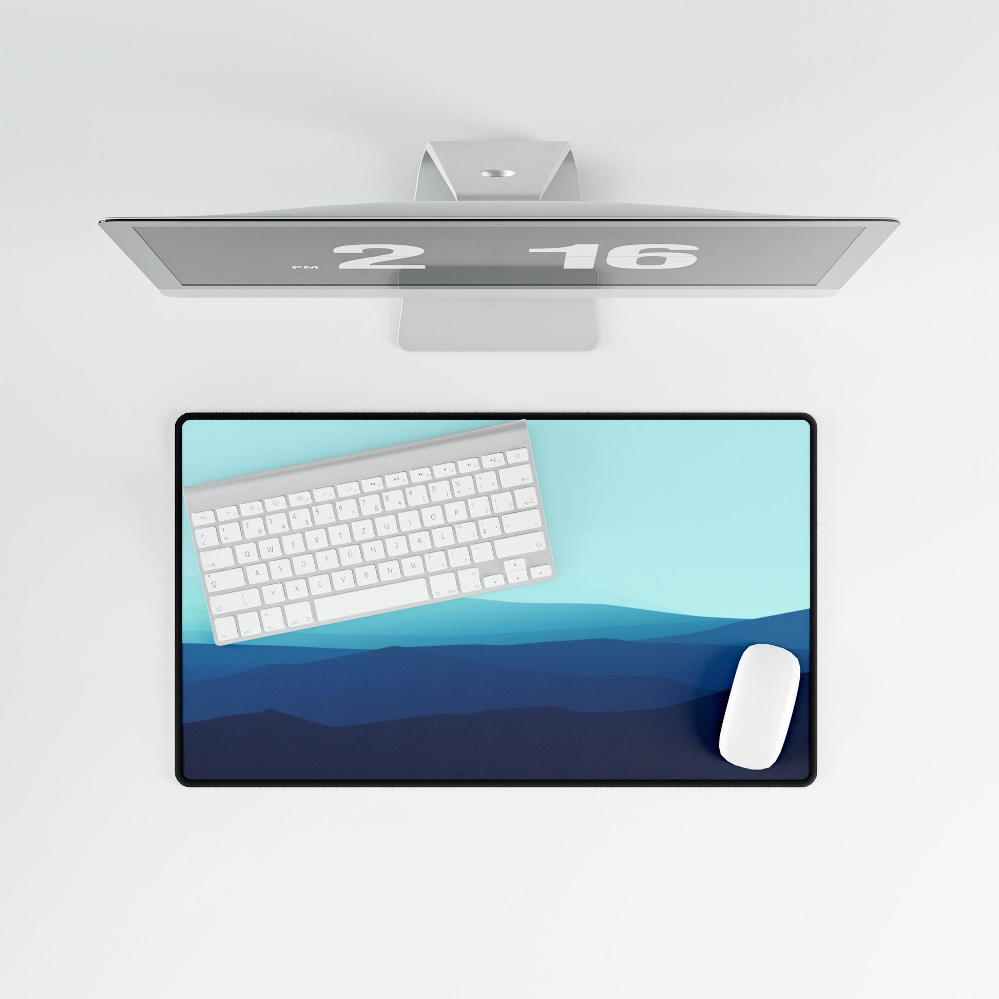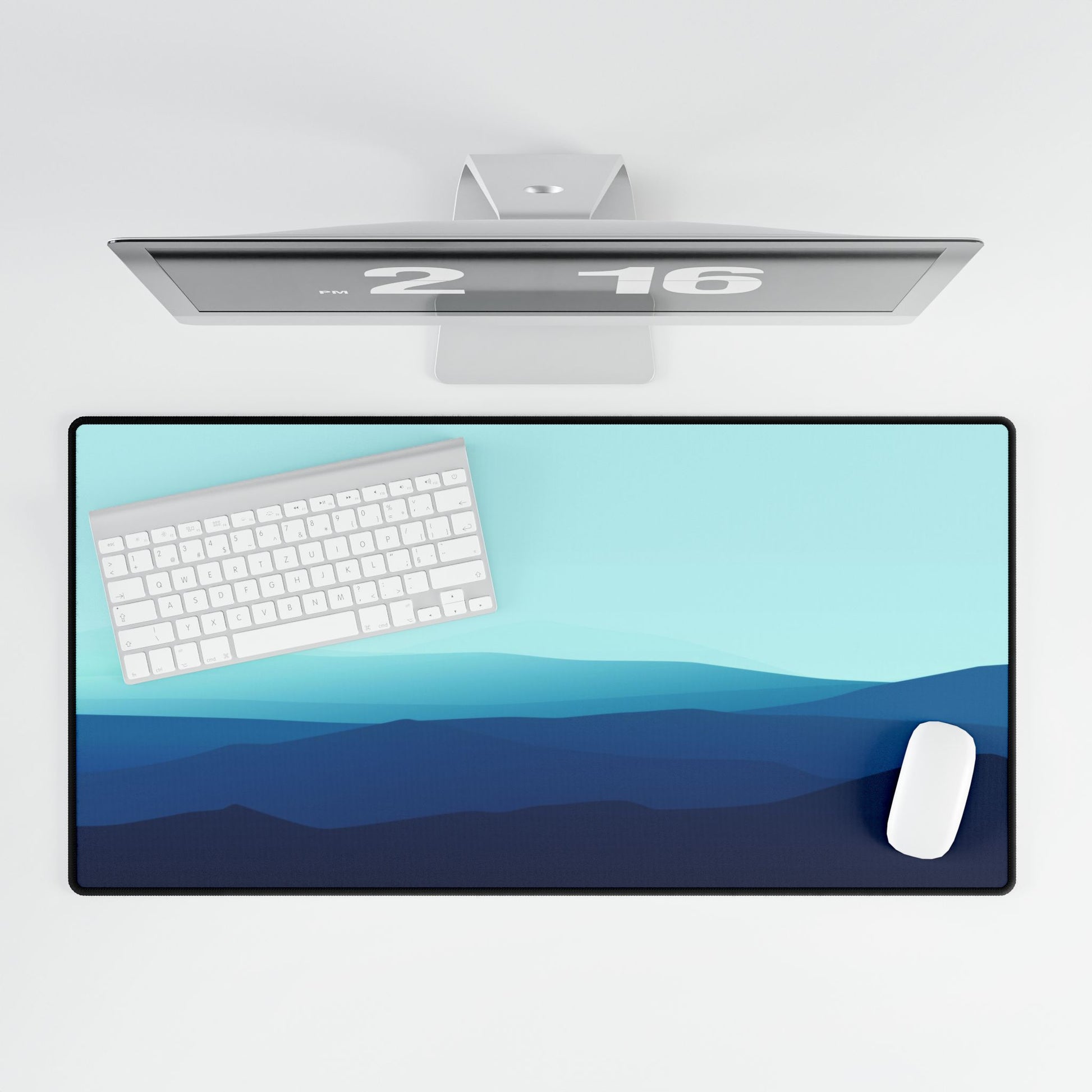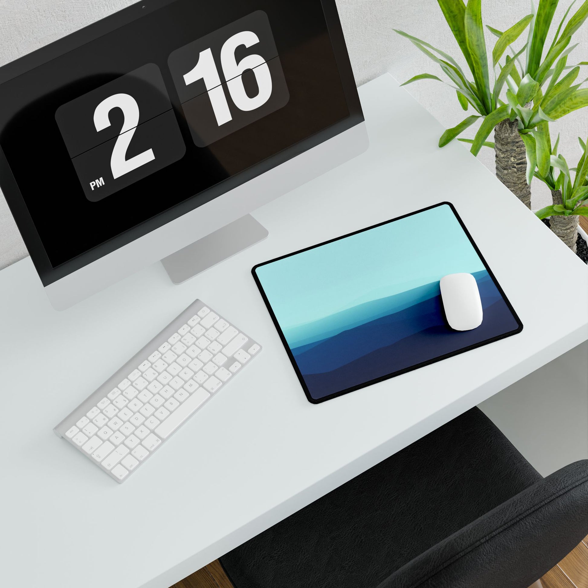 Soft layers of cool blue flow across the horizon — a clean, minimal design that keeps your desk feeling calm.