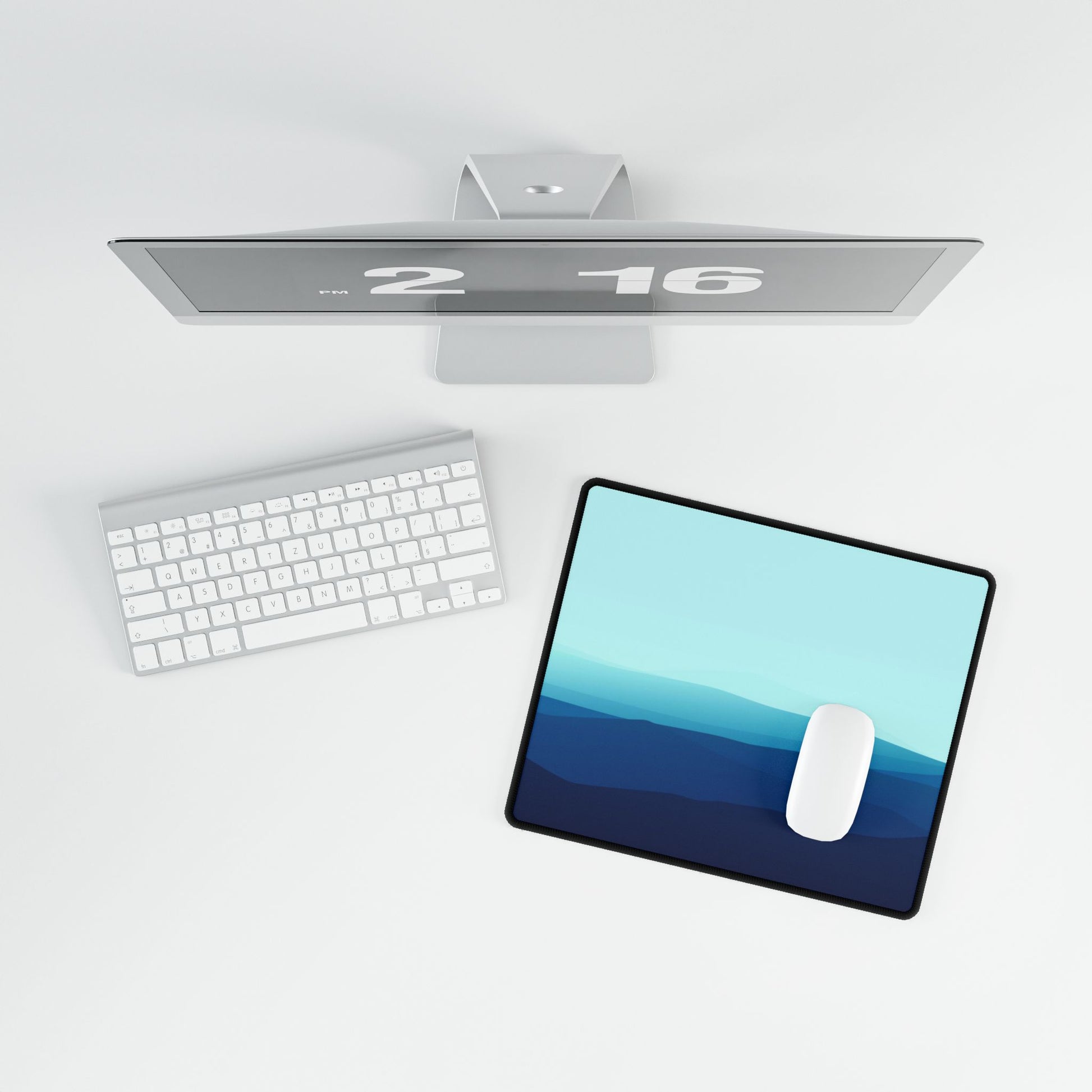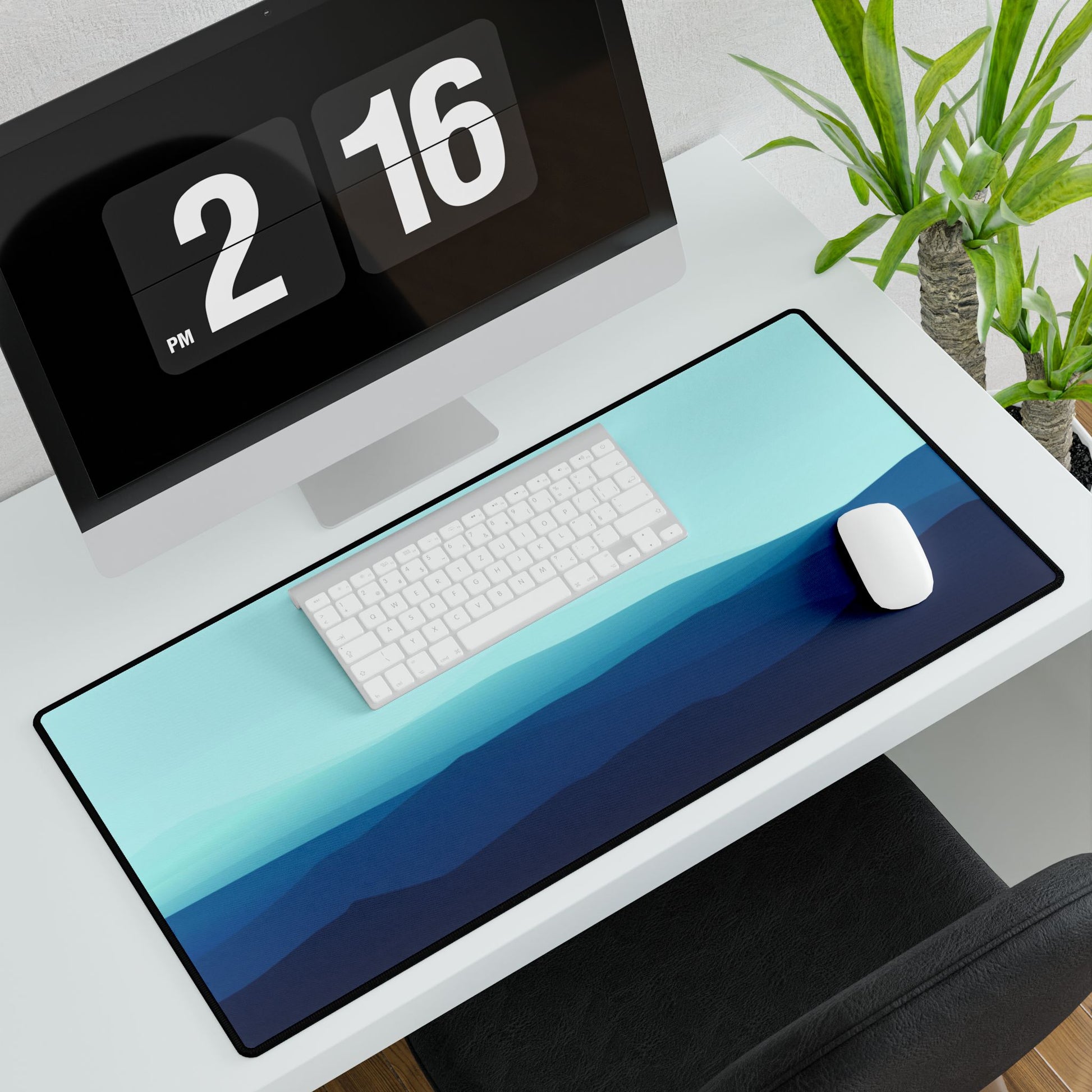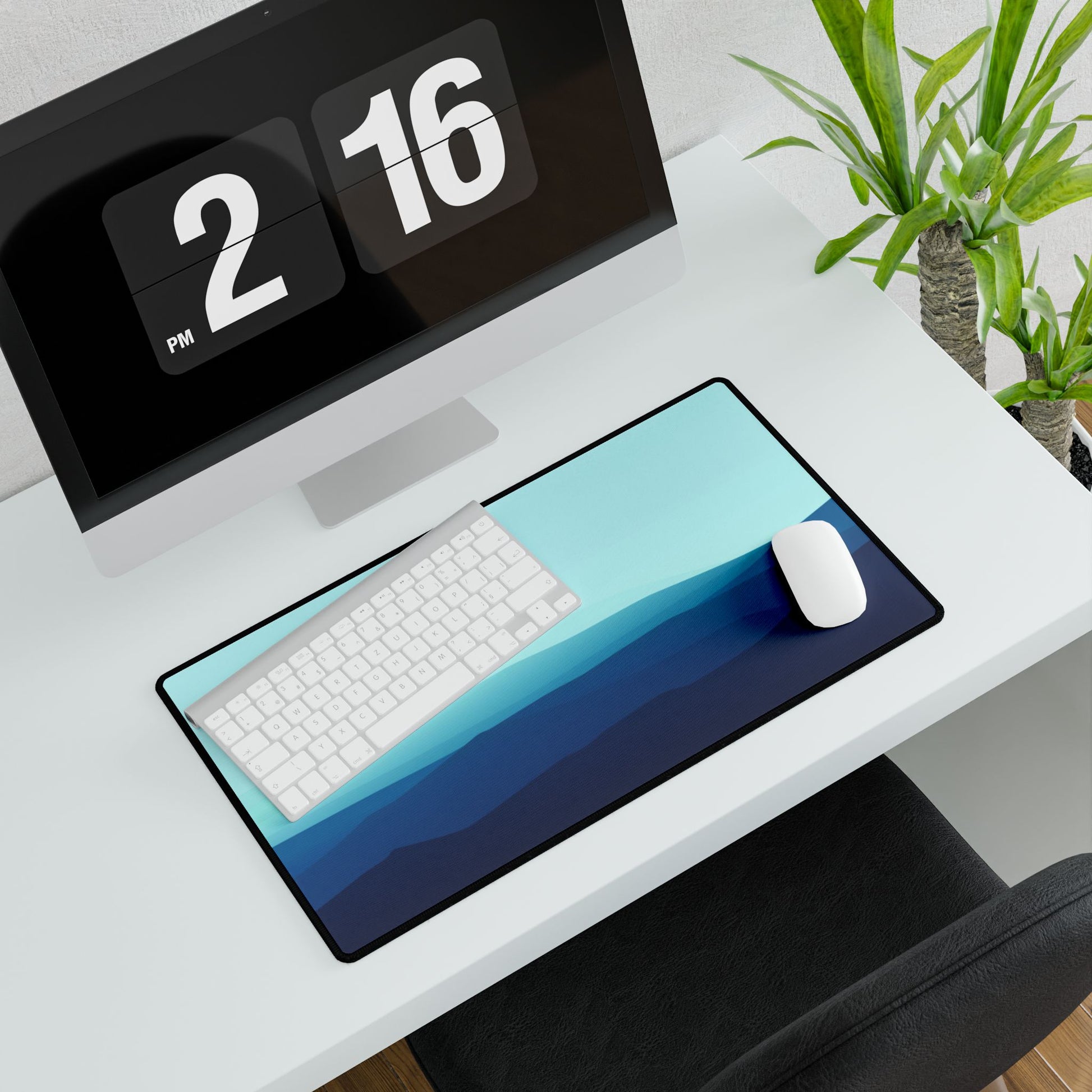 Soft layers of cool blue flow across the horizon — a clean, minimal design that keeps your desk feeling calm.