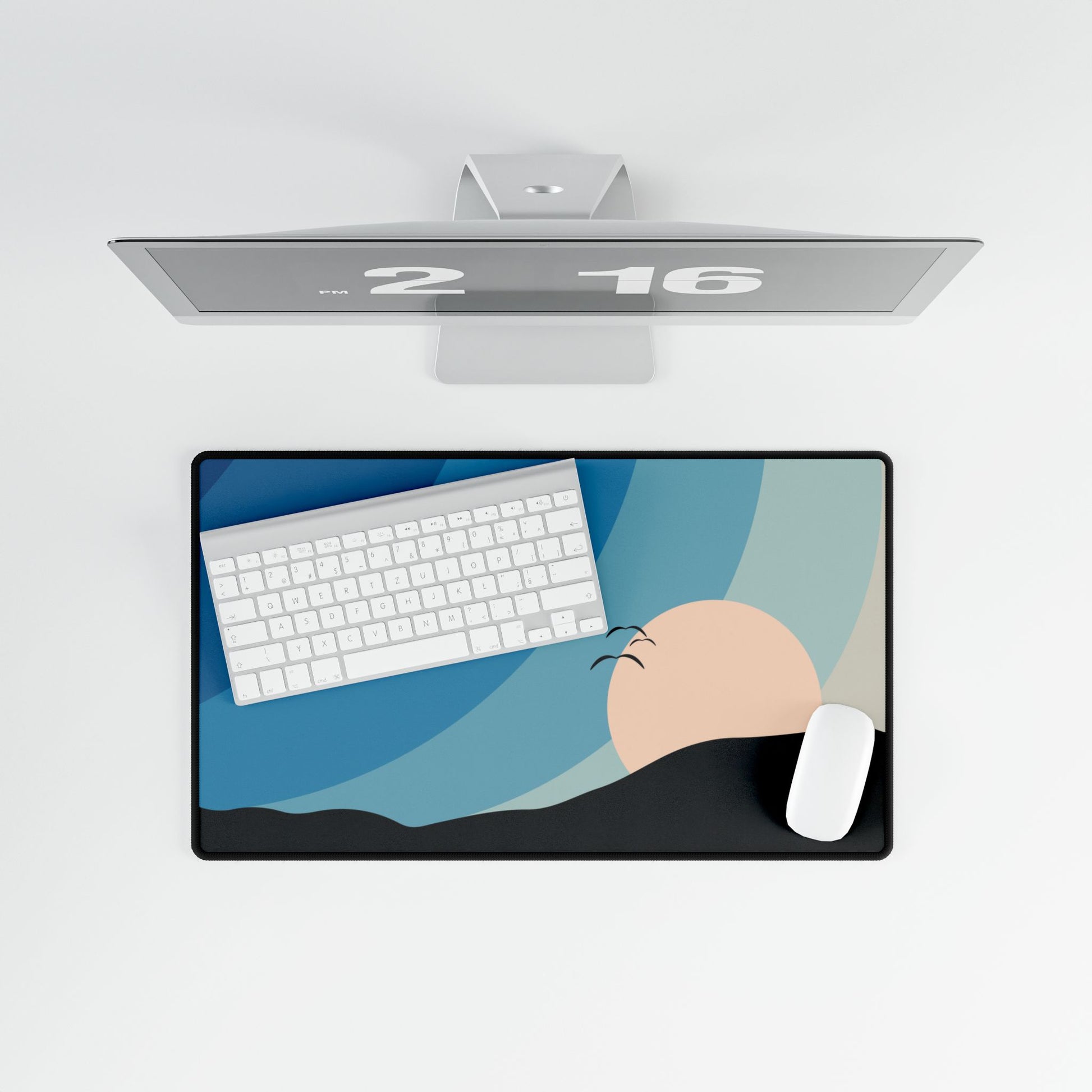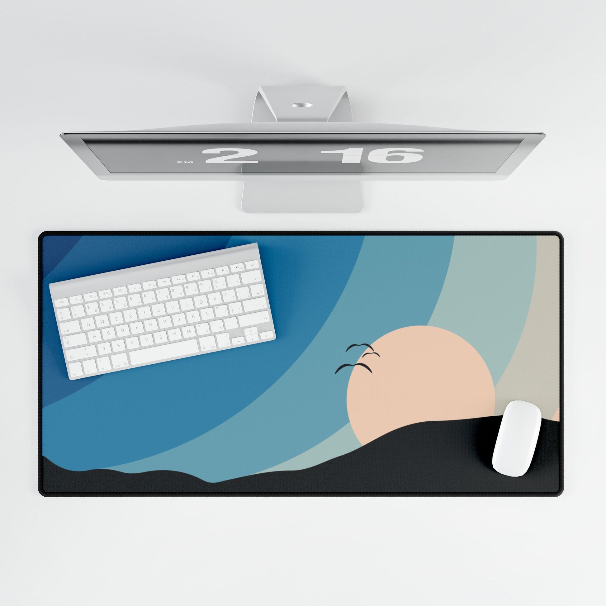 Smooth gradients of ocean blues meet a soft sun glow — a clean, modern look that keeps your desk feeling fresh.