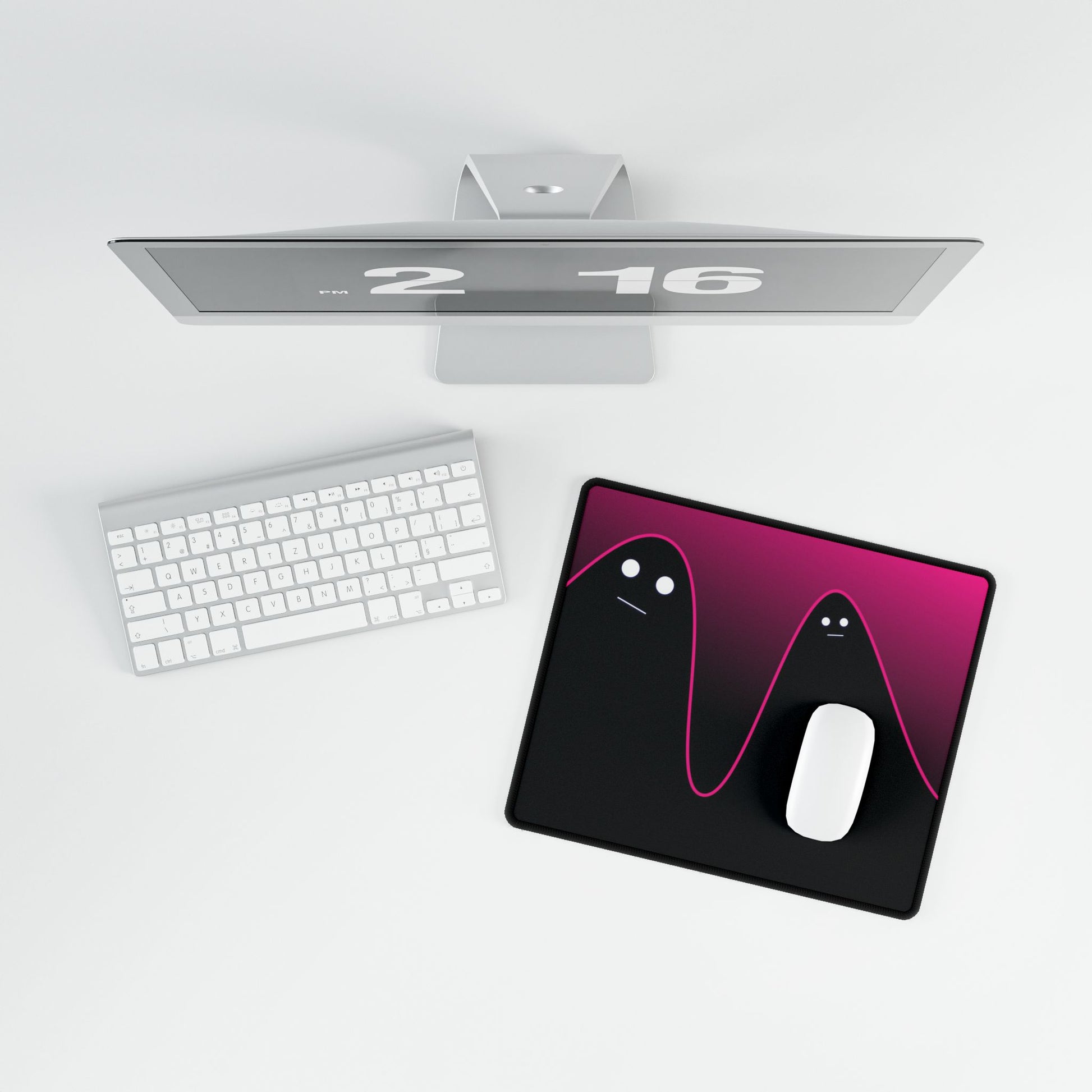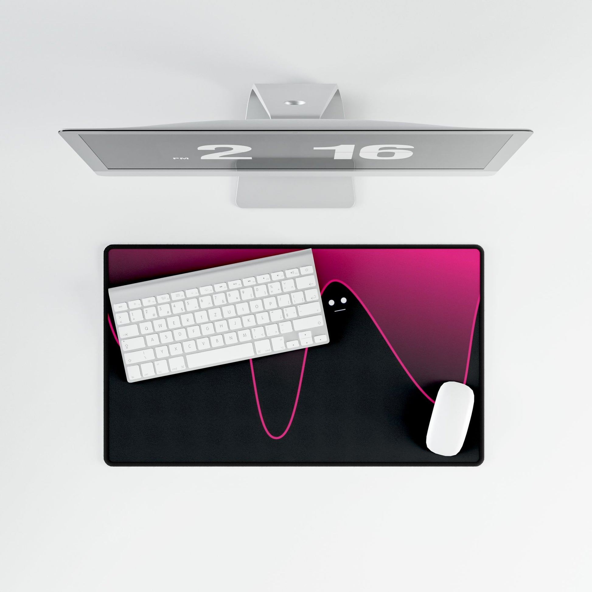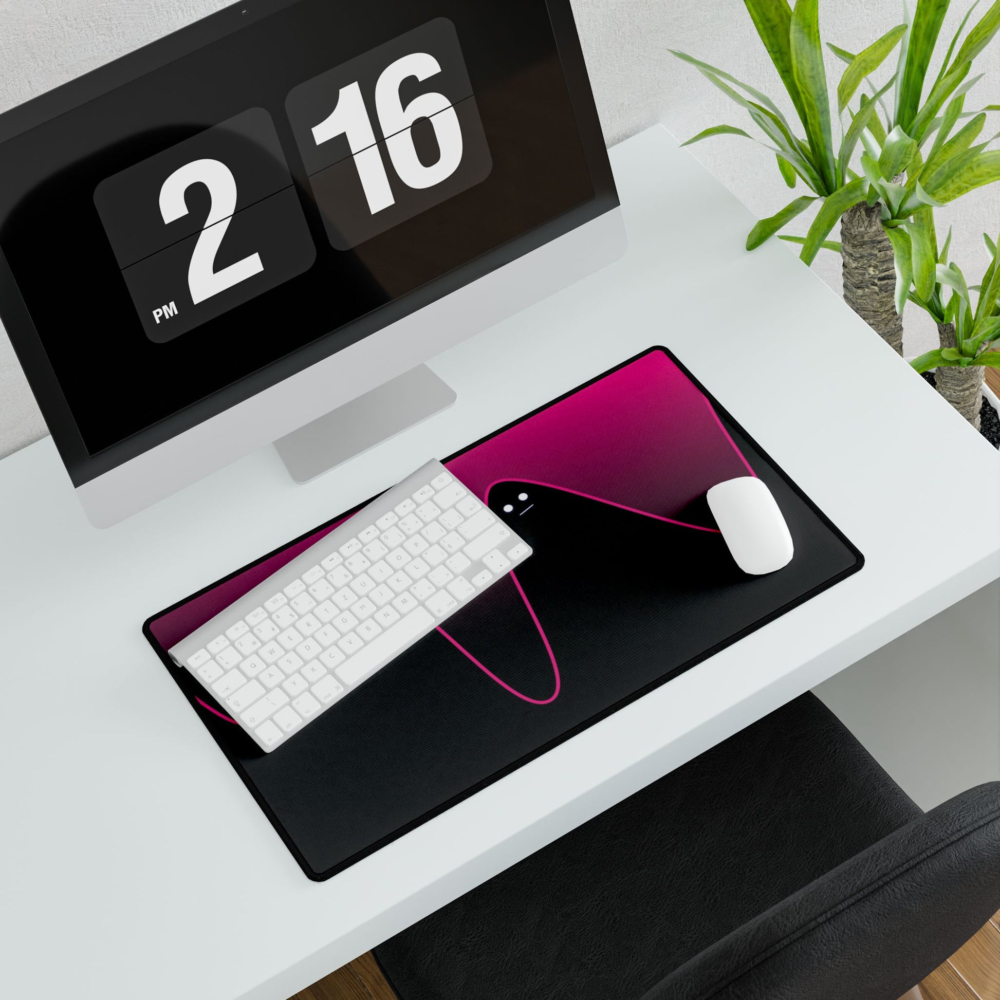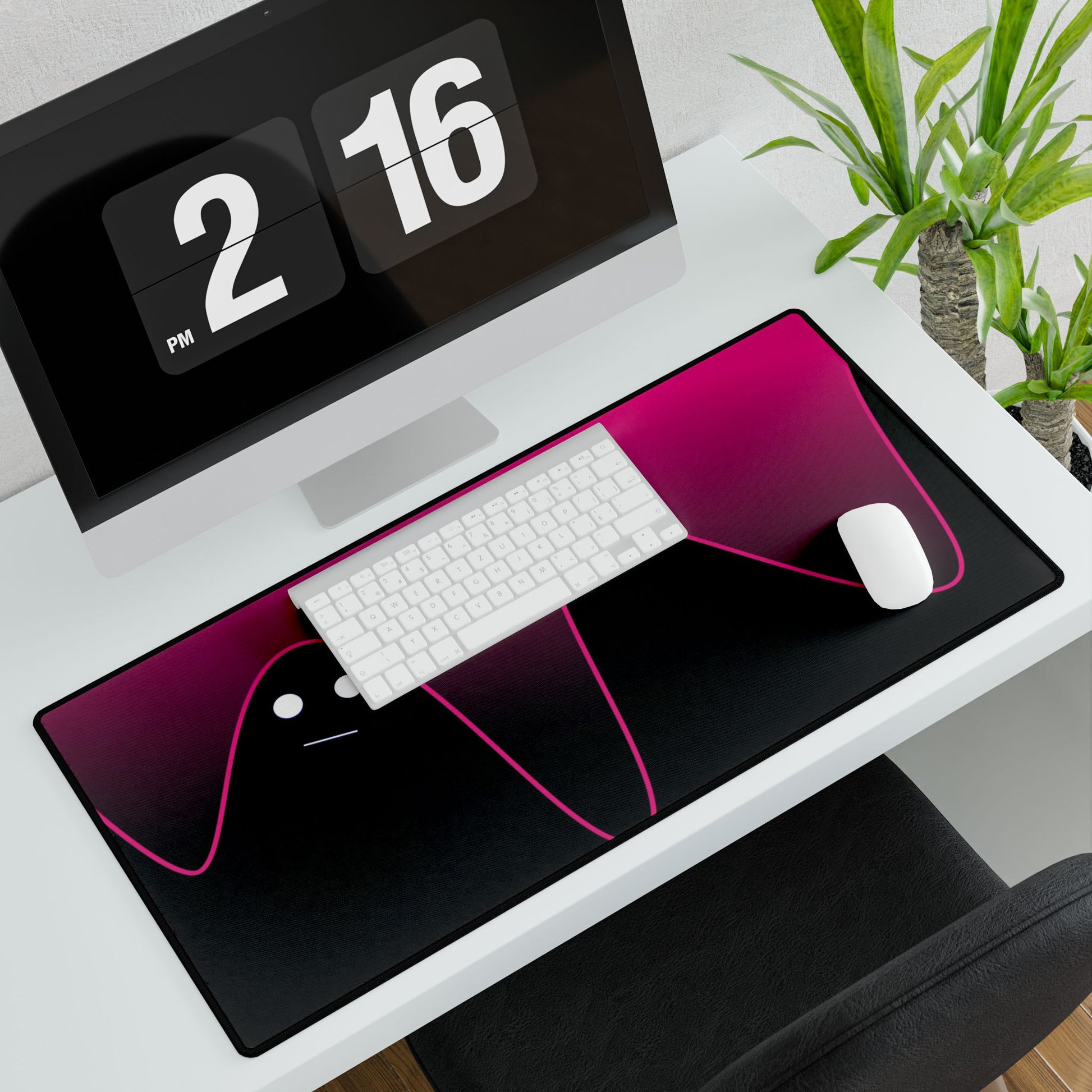 Bold neon pink flows over deep black, creating a sharp, modern edge that stands out on any desk.